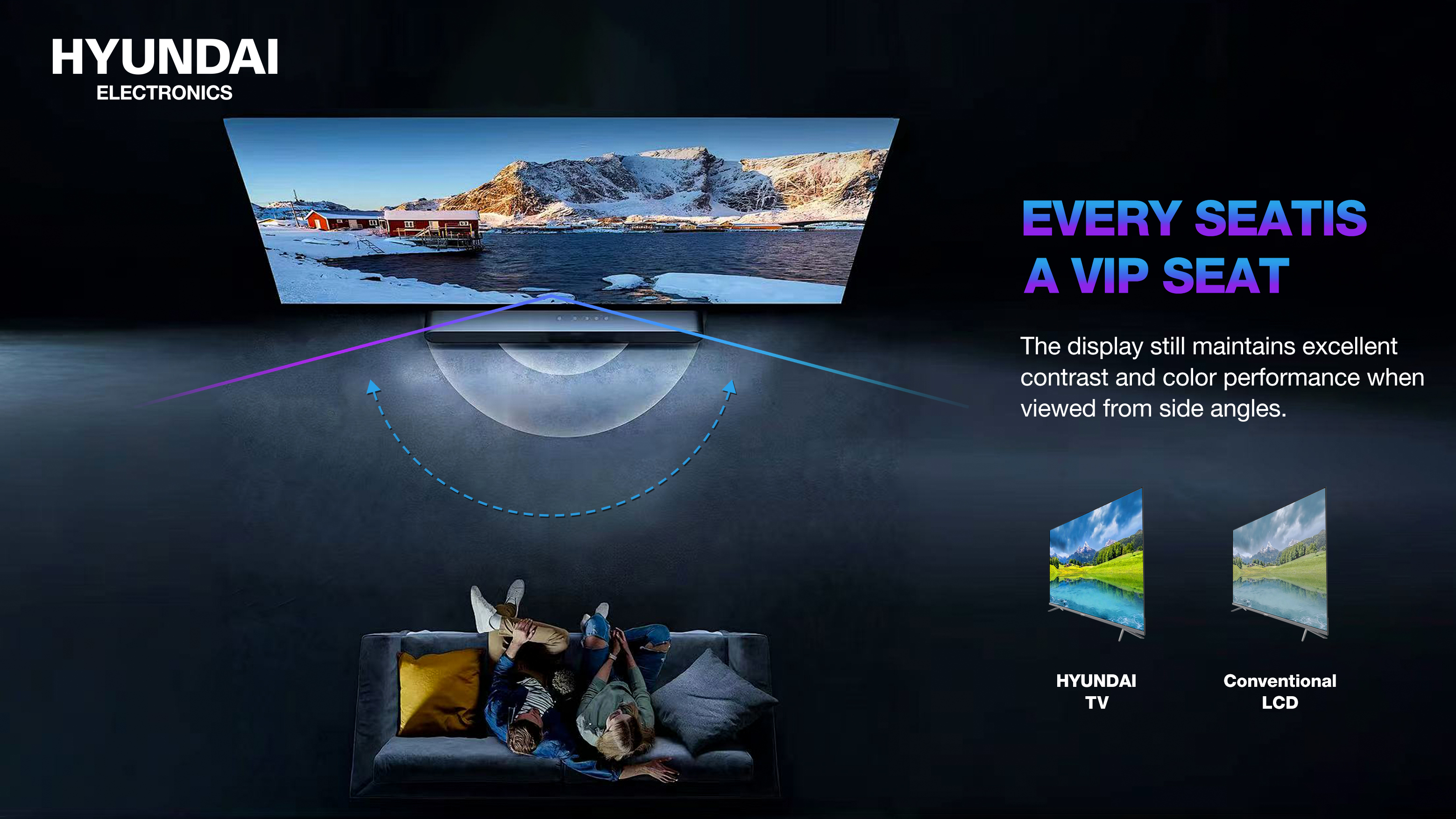Hyundai TV has a modern design with a bezel-less screen that creates a truly immersive viewing experience. This sleek and stylish TV fits perfectly into any décor, adding a modern and sophisticated touch. A large number of ports and connectors allow you to connect a variety of devices to the TV, from game consoles to external drives, making it a true multimedia hub for your home. When you choose the Hyundai HTV-100S, you choose quality, reliability, and state-of-the-art technology all in one.