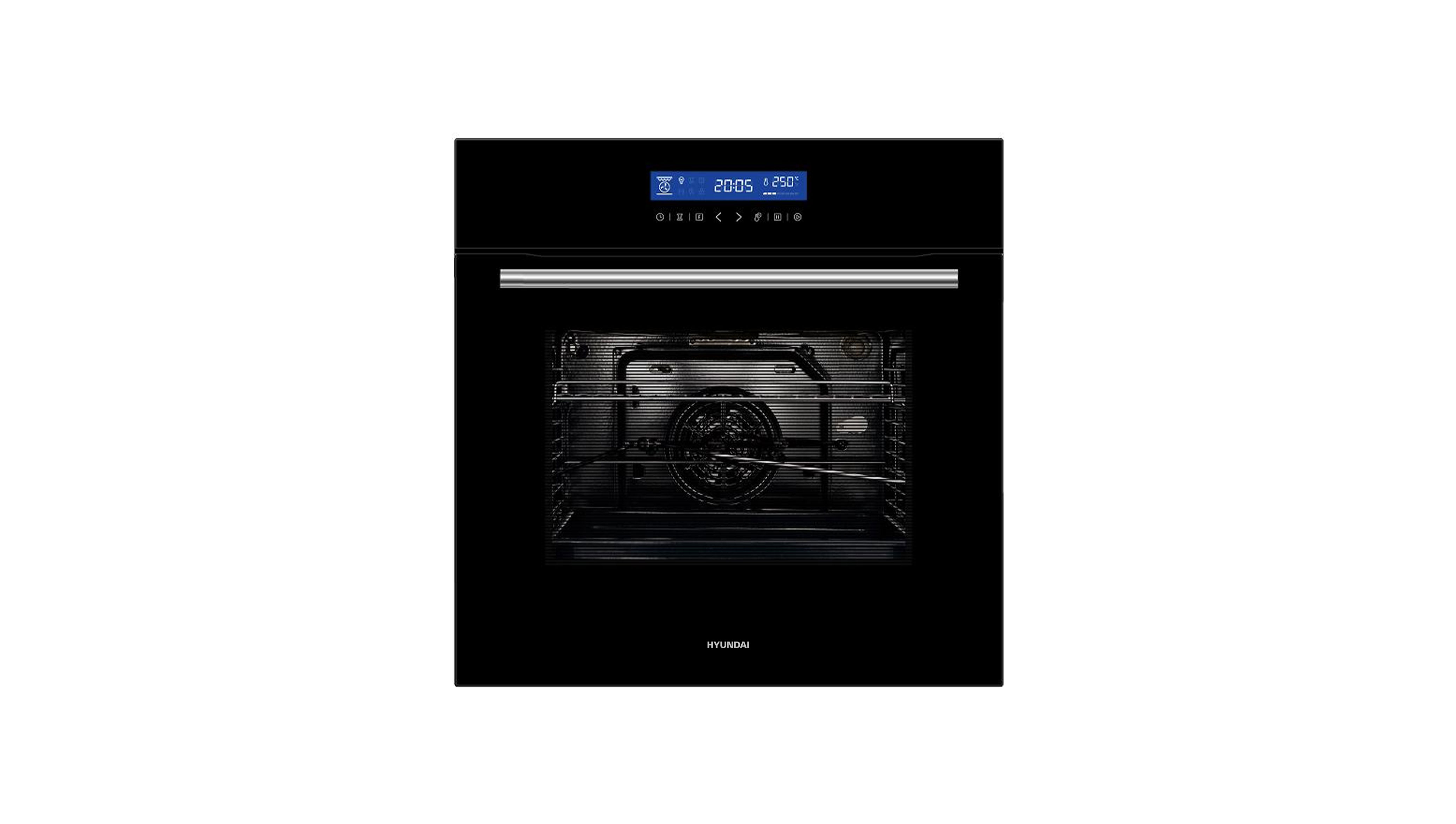 This HYUNDAI 70L built-in electric oven HYBIOV-70T9 is designed for versatile home baking and cooking. With a stylish black body and drop-down door, it fits perfectly into modern kitchen cabinets for a neat, integrated look.