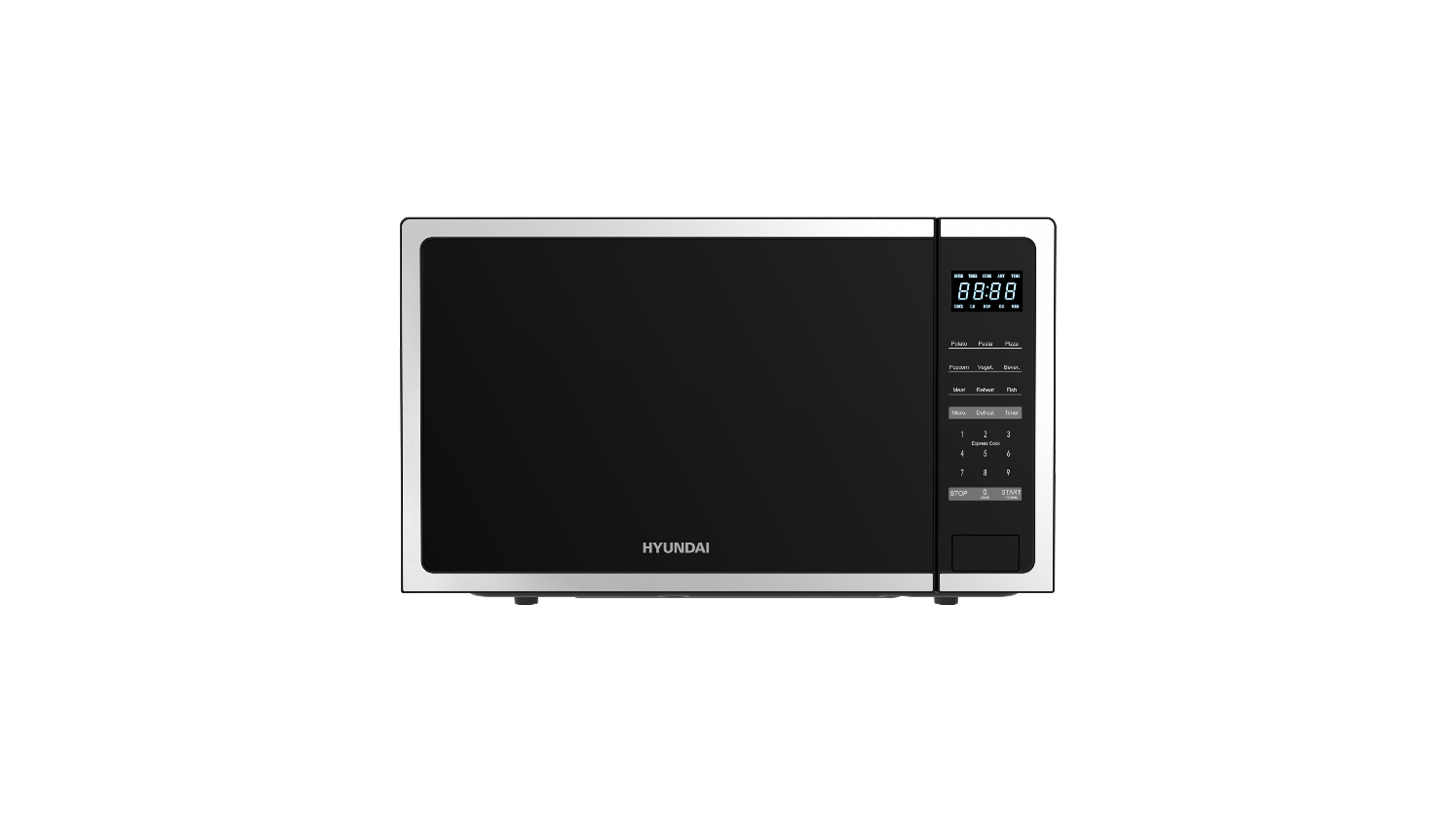 HYUNDAI HYMW-E42C1GB is a premium 42L freestanding microwave oven, designed for large families and heavy-duty kitchen use. Its sleek black body with chrome-plated keys and knob, paired with a mirror door glass, delivers a luxurious, high-end look.